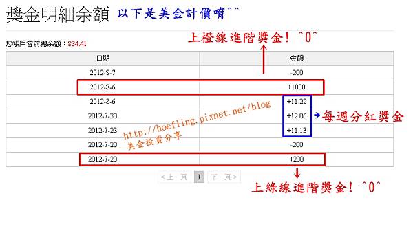 不小心在2012/8/6又進階了~領了進階獎金1000美金 XD