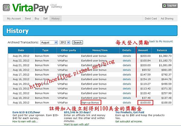 嚇了一跳,才1個多小時,帳戶多了將近37美金,相當台幣1100元