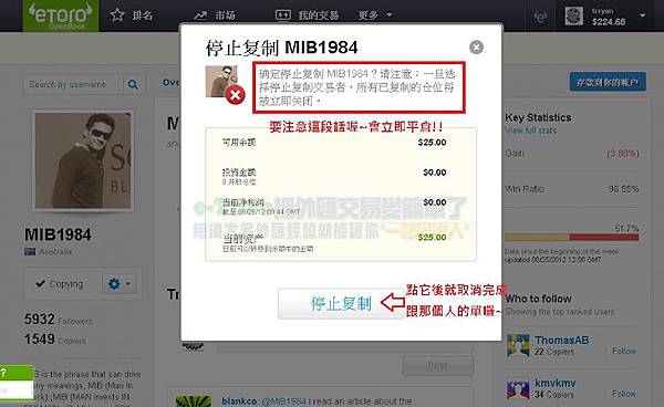 唯一需要注意的是如果你還有他所下的單,這時如果你取消跟單,